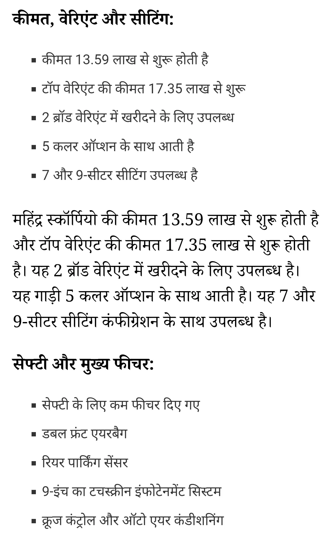 बीच में मारुति कंपनी ने अर्टिगा (MARUTI ERTIGA)को लांच किया तो सभी गाड़ियों की सेल काफी कम हो गई थी, 7 सीटर अर्टिगा को लोग खूब पसंद कर रहे थे और इसकी बिक्री भी काफी हो रही थी। लेकिन मार्च 2024 में ईद का 7 सीटर को महिंद्रा की स्कॉर्पियो में पछाड़ दिया। हालांकि महिंद्रा की स्कॉर्पियो को राजा गाड़ी के रूप में जाना जाता है, RUF AND TUF के रूप में जाने जाने वाली MAHINDRA SCORPIO को लोग खूब पसंद भी करते हैं।